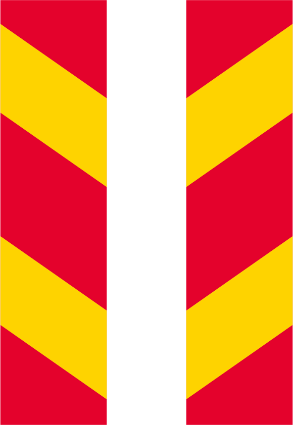 Typ av skylt Anger vägens eller körbanans kant eller skiljer trafikriktningar åt vid komplicerade passager